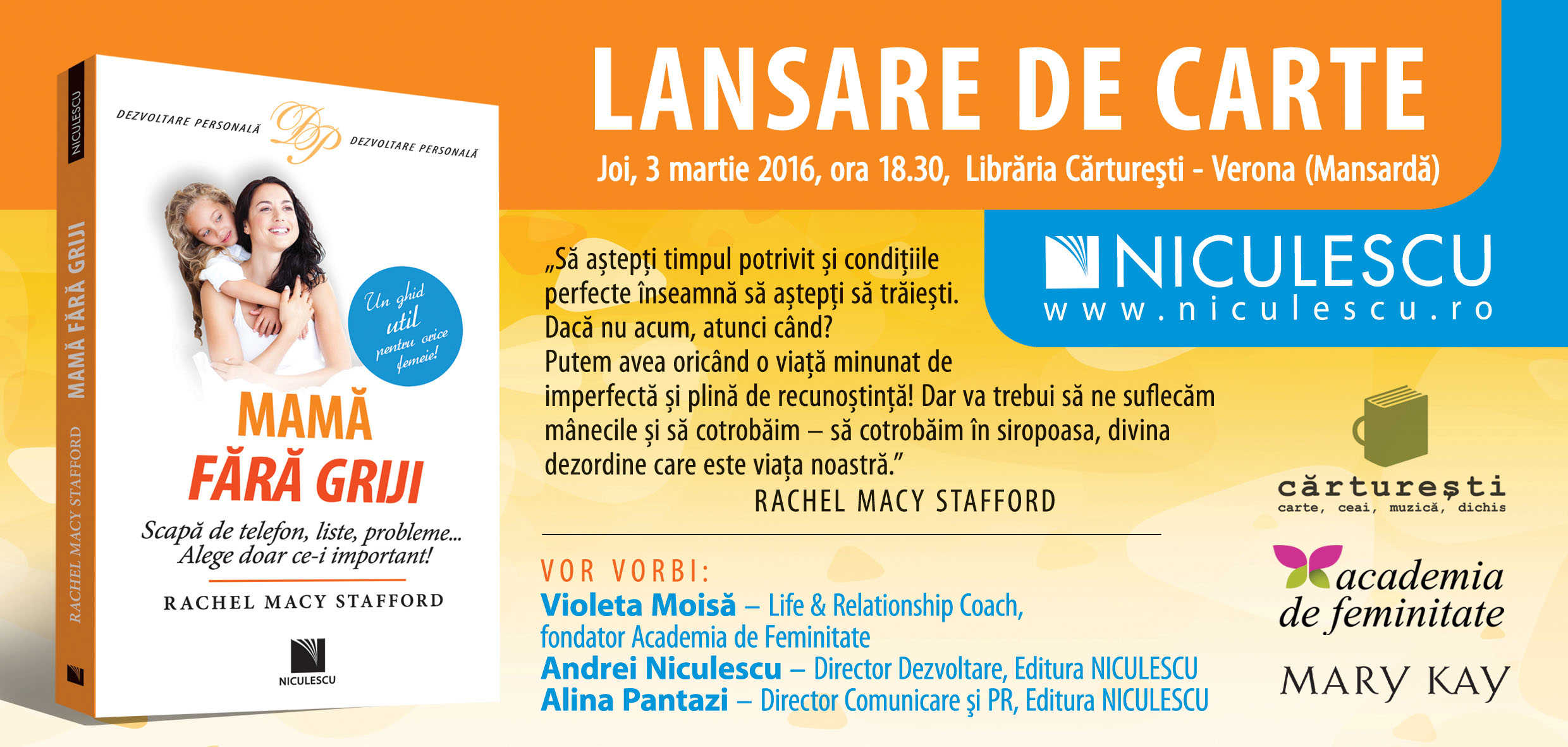 Din momentul în care şi-a lansat blogul, Hands Free Revolution, în anul 2010, munca lui Rachel s-a făcut cunoscută în publicaţii celebre, precum USA Today, TIME.com, The Huffington Post şi Reader’s Digest. Popularitatea blogului său a atins peste 1 milion de vizitatori pe lună. Mamă fără griji este prima ei carte şi, aşa cum veţi descoperi, Rachel este o scriitoare în adevăratul sens al cuvântului.